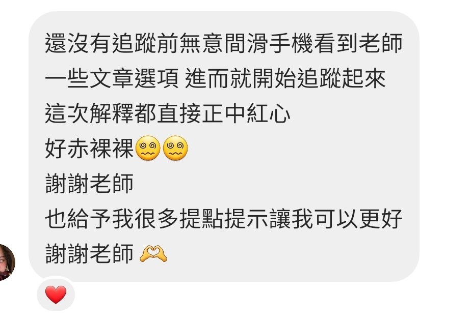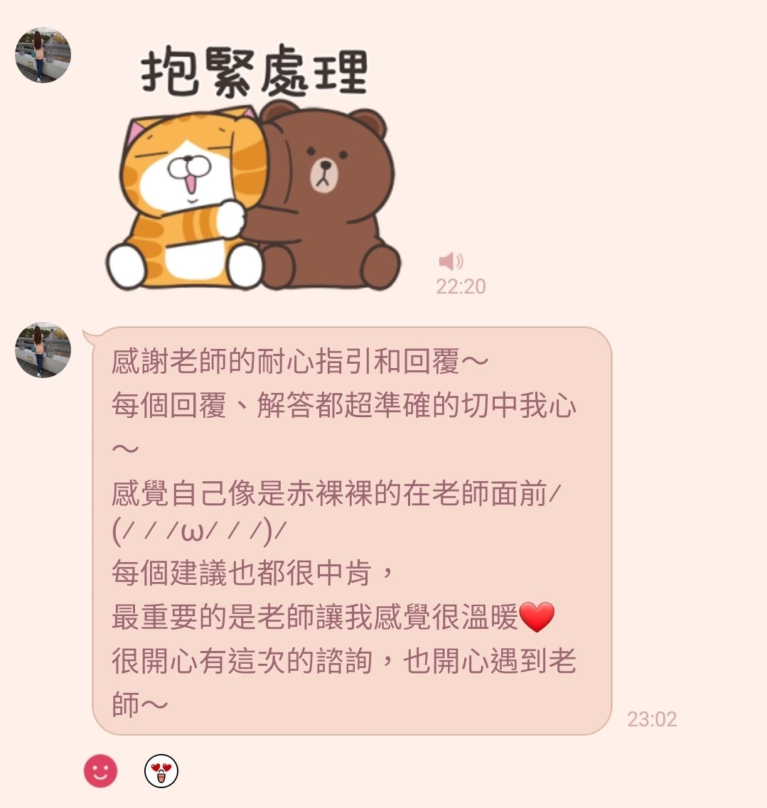 - 預約完成後,心心會於諮詢前一天再次確認諮詢時間(要改預約時間請於三天前告知,這樣才不會造成心心預約錯亂,謝謝大家配合)
