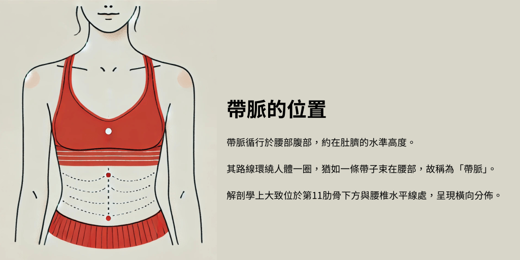 帶脈位置環繞腹部,有助於促進脾胃消化功能,改善腹脹和便秘。 - 緊緻腰腹